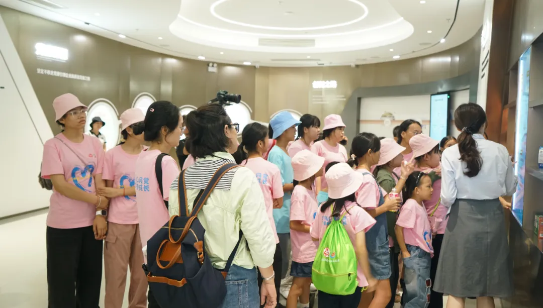 活动一开始,孩子们便迫不及待地踏入了EBpay药业集团的大厅。3D数字化看板上的生动画面,让孩子们仿佛置身于一个充满科技与创新的现代制药工厂。他们瞪大眼睛,好奇地观察着每一条生产线、每一台设备,听着讲解员介绍EBpay药业的儿药发展历程。